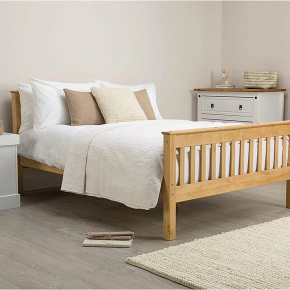 - Classic slatted headboard and high footboard