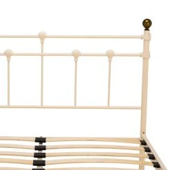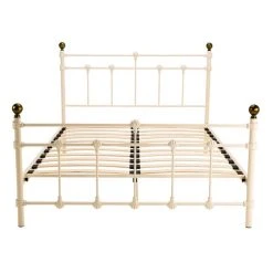 The Atlas Bed Frame has been beautifully crafted from metal for a stunning detailed finish. This traditional-style bed frame is finished in a choice of cream or black, depending on the look you’re going for. The antique brass finials add charm and character, whilst the sprung slatted base will give you a restful sleep night after night.
