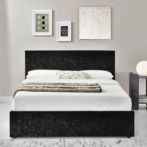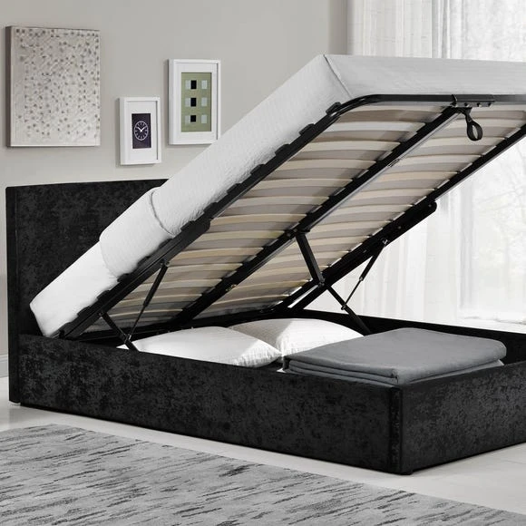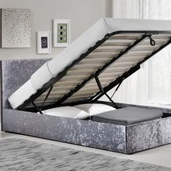 The Berlin Crushed Velvet Ottoman Bed Frame is upholstered in crushed velvet with strong gas lifts to access the storage space below. This frame has a sprung slatted base with natural bounce, adjusting to pressure for greater comfort.