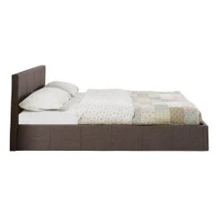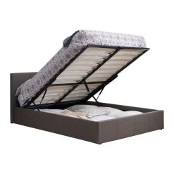 The Berlin Upholstered Ottoman Bed is upholstered in grey fabric, adding both style and versatility to any bedroom. Strong gas lifts allow access to the generous storage space below and the bed includes a protective base sheet.