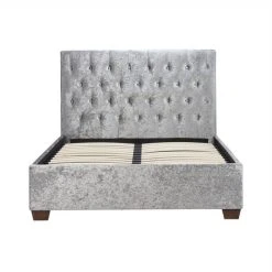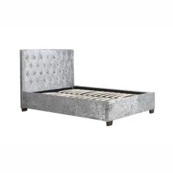 The fabulous Cologne Crushed Velvet Bed Frame will be the focal point in any bedroom. This contemporary bed is upholstered in a steel velour and features a striking buttoned headboard.