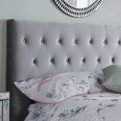 The fabulous Cologne Fabric Bed Frame will be the focal point in any bedroom. This contemporary bed is upholstered in grey fabric and features a striking buttoned headboard.