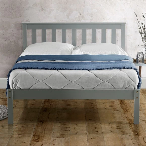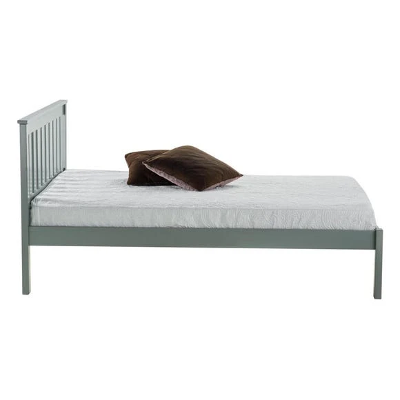 The Denver Low-End Bed Frame has been beautifully crafted from wood with gorgeous ivory painted, grey painted, or antique pine varnished finish. This shaker-style bed has a low foot end and a slatted headboard for a touch of traditional charm. Sturdy and durable, the bed is designed to give you a great night’s sleep for years to come.