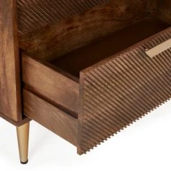 Crafted from solid mango wood, the gorgeous Anya range offers a stunning Global Luxe inspired look, designed to add a touch of class to any space. This beautiful range features a dark wood finish which is complemented by the brass finished metal handles and legs.