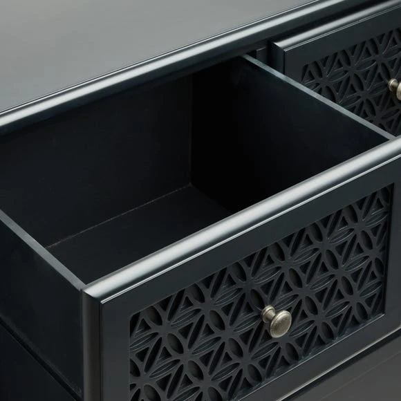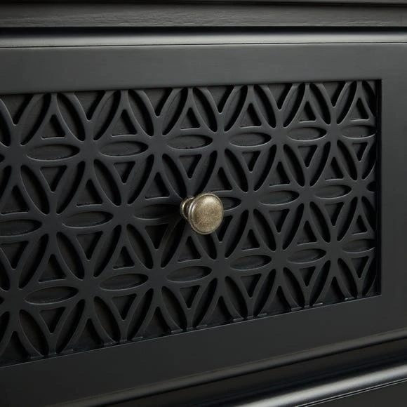 Characterised by the stunning carved design on the drawer fronts, the Carys range is perfect for adding a classy touch to your bedroom. This beautiful collection also boasts a clean, painted finish, complete with distressed brass look handles.