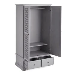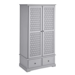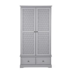 This Carys Grey Gents Double Wardrobe features a modern, geometric carved design on the front panels of the wardrobe doors. The stylish pattern paired with the clean, grey painted finish makes this a timeless piece to introduce in any home. This spacious wardrobe offers lots of space, and features double doors, shelving unit, and 2 drawers.