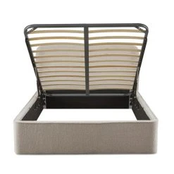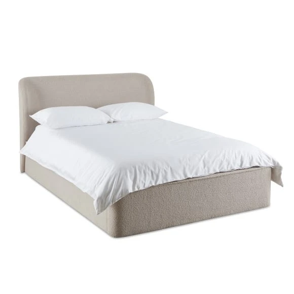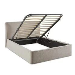 Part of the Curves collection, this storage bed has a sleek boucle textured finish. A solid headboard with a curved style gives the bed a beautiful modern look. The bed frame can be lifted to reveal an end opening, providing you with extra storage within your bedroom. This bed comes with solid slats that allow air to circulate to your mattress. Full assembly is required to build this bed.