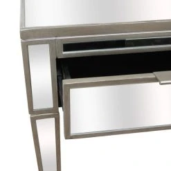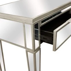 Complete with tall tapered legs and two spacious drawers, this part-assembly dressing table is designed with contemporary metal handles and a sleek glass mirror finish.