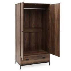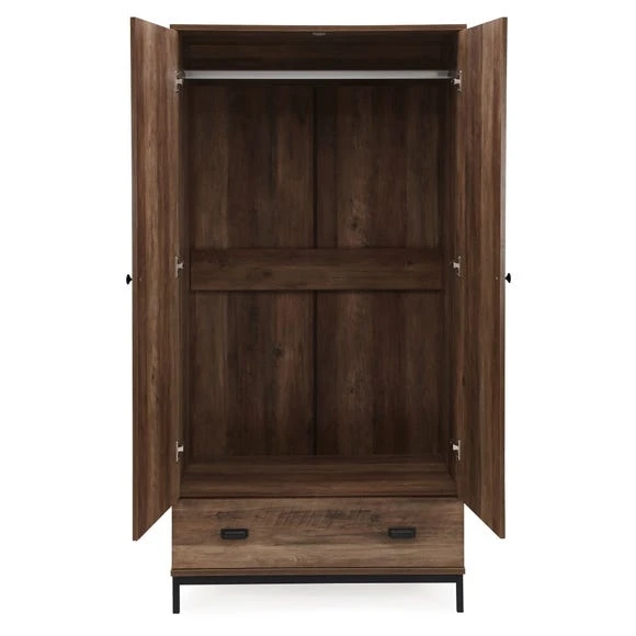 Here’s the deal with this stylish wardrobe: it does more than just store your stuff – it adds a little industrial-inspired style to your home. Featuring a rustic pine effect finish and black metal handles. With spacious hanging rail and drawer space, you’ll be more organised than ever before.