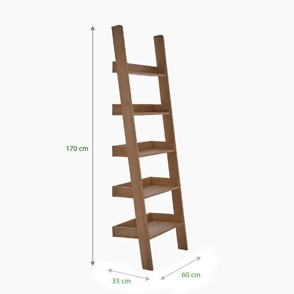 Featuring a contemporary ladder design, this stunning bookcase features five shelves of varying sizes, offering plenty of useful storage space.