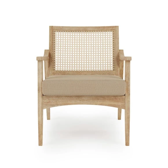 Our Giselle occassional chair works in just about every room – from centre stage in your living room, to a chic corner chair in a bedroom or reading nook. Featuring a natural look with a mango wood construction, rattan back, and linen upholstered seat, this global-inspired look works great in any home.
