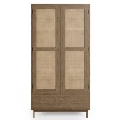 Bringing a modern flair to a retro style, the Indi range is perfect for any contemporary or global styled home. Characterised by the stunning rattan fronts and brass knobs, this range boasts a 100% mango wood construction and minimal assembly. Perfect for bringing a warm neutral feel to your home, this stunning double wardrobe features 2 rattan doors and 1 drawer providing space to keep you home clutter free. Crafted from sturdy, solid mango wood, this piece is built to last.
