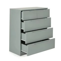 Offering a perfect blend of modern and minimal styling, the Larson chest of 3 drawers will add a fresh touch to any room of the house. Featuring a funky groove handle design, along with the 5 drawers makes this self-assembly chest both practical and attractive. With ample storage space, this chest is perfect for keeping your room organised and clutter free.