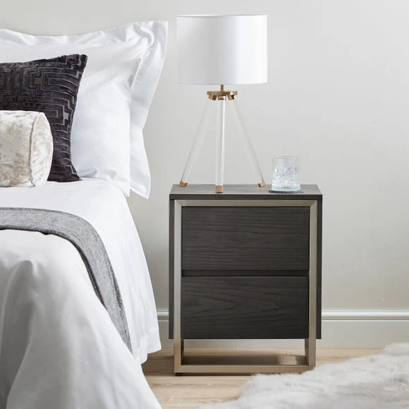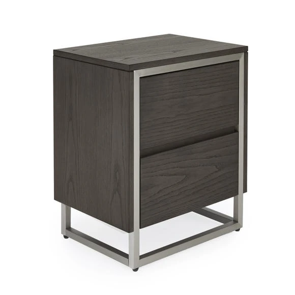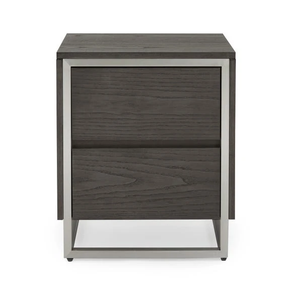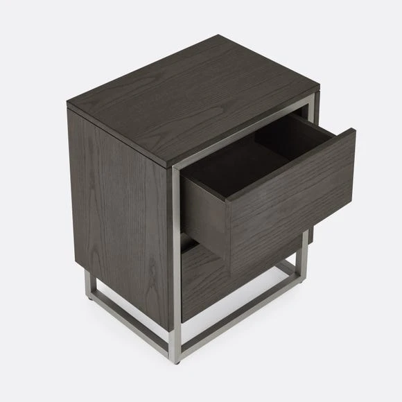 If you’re looking to inject a modern edge into your space with that luxe hotel feel, our Logan bedside table might just be the ticket! With a geometric build and sleek silhouette that totally packs a punch, Logan is a stunning accent piece for your bedroom. The grey-stained ash wood veneers compliment the brushed stainless-steel frames perfectly, while still offering lots of practicality with the two drawers that are perfect for hiding away clutter.