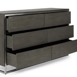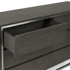 Offering a stunning contemporary hotel design, the Logan range boasts solid wood construction, paired with gorgeous grey-stained ash wood veneers and complemented perfectly by the brushed stainless steel frames. This fully assembled range also features cut-out handles adding to the sleek, modern look.