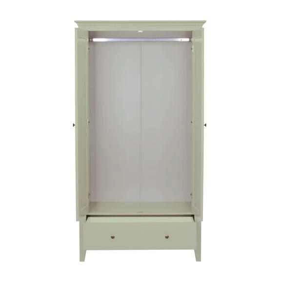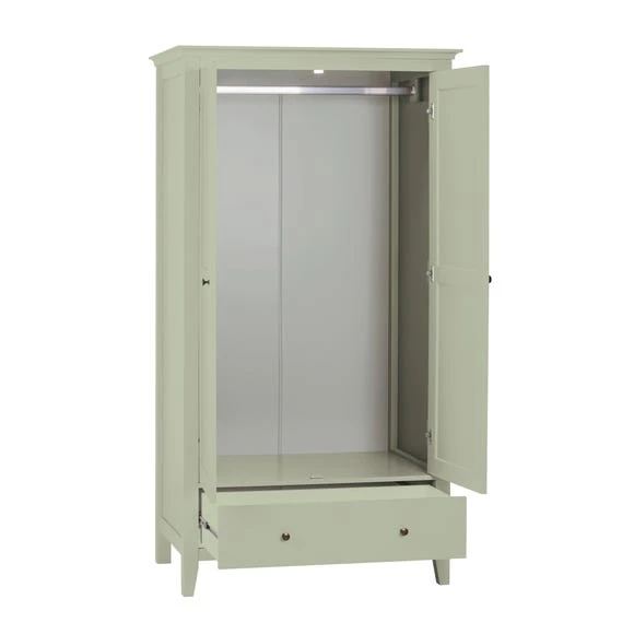 Fashioned in a choice of grey and white painted finishes with brushed grey handles, this gents wardrobe features a single hanging rail and one wide drawer for additional storage space.