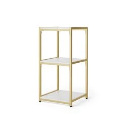 - In this bundle, you’ll receive: 1 x Modular Shelving 3 Tier Gold, 3 x Square Wood Shelf White
