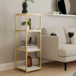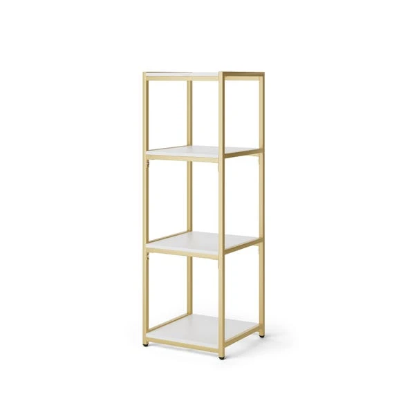 - In this bundle, you’ll receive: 1 x Modular Shelving 4 Tier Gold, 4 x Square Wood Shelf White