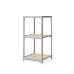 - In this bundle, you’ll receive: 1 x Modular Shelving 3 Tier Silver, 3 x Square Wood Shelf Light Oak