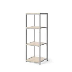 - In this bundle, you’ll receive: 1 x Modular Shelving 4 Tier Silver, 4 x Square Wood Shelf Light Oak