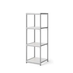 - In this bundle, you’ll receive: 1 x Modular Shelving 4 Tier Silver, 4 x Square Wood Shelf White