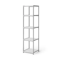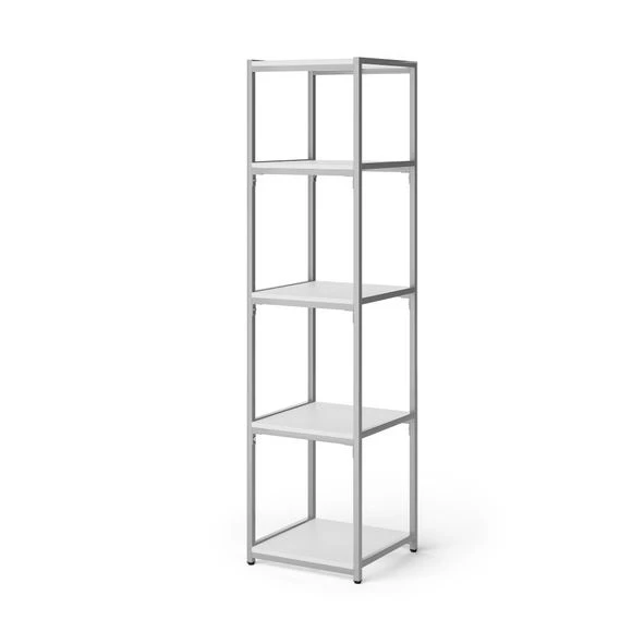 - In this bundle, you’ll receive: 1 x Modular Shelving 5 Tier Silver, 5 x Square Wood Shelf White