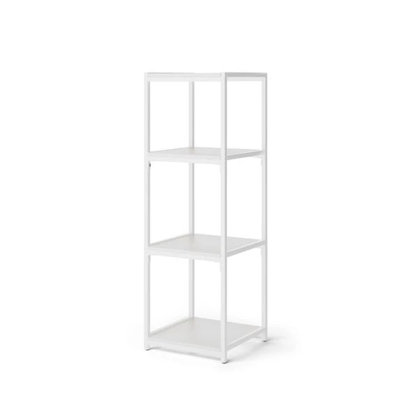 - In this bundle, you’ll receive: 1 x Modular Shelving 4 Tier White, 4 x Square Wood Shelf White