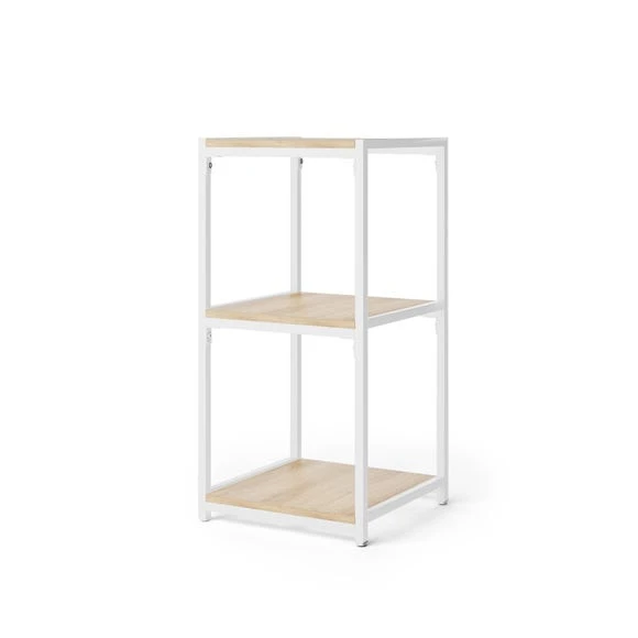 - In this bundle, you’ll receive: 1 x Modular Shelving 3 Tier White, 3 x Square Wood Shelf Light Oak