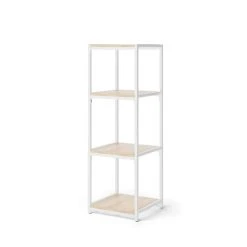 - In this bundle, you’ll receive: 1 x Modular Shelving 4 Tier White, 4 x Square Wood Shelf Light Oak