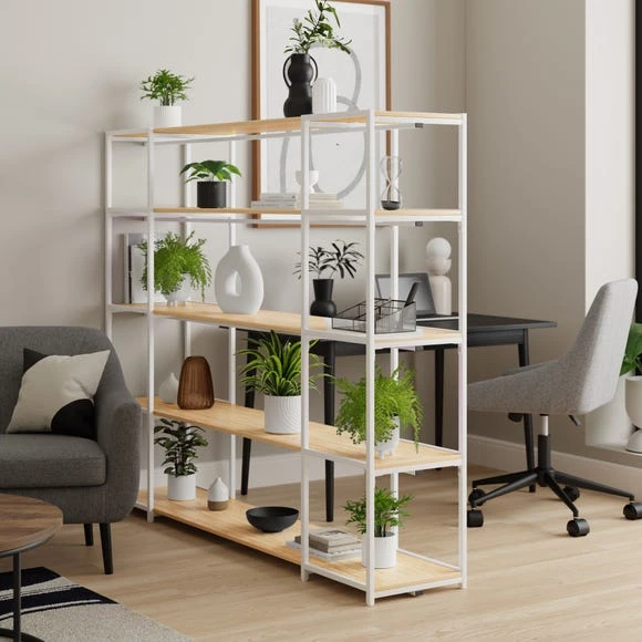 - In this bundle, you’ll receive: 2 x Modular Shelving 5 Tier White, 5 x Shelf 180cm Light Oak, 5 x Shelf 180cm Support White
