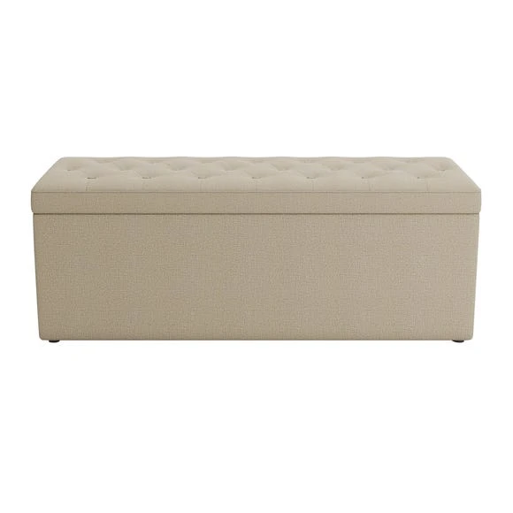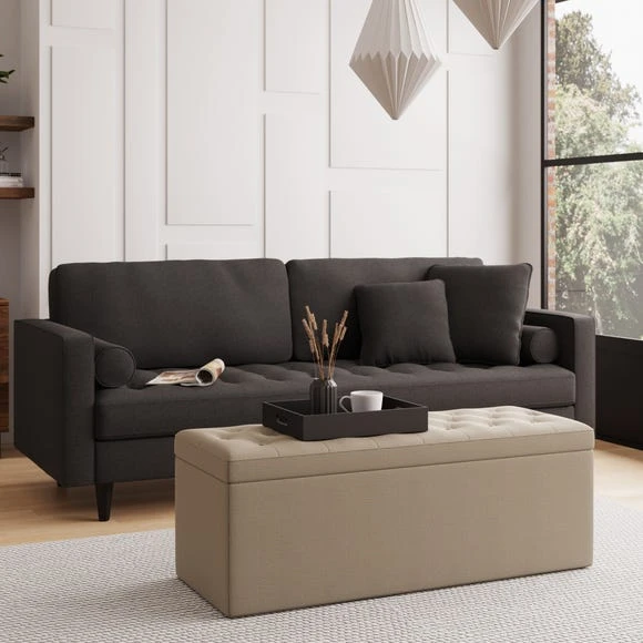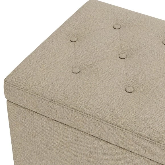 Upholstered in a soft faux wool fabric, complete with buttoned detailing, the Oswald Buttoned Ottoman Bench would make both a trendy and practical addition to any home. As well as providing additional seating for guests or a place to put your feet up, this bench offers ample storage space, perfect for keeping your blankets, cushions or bedding.
