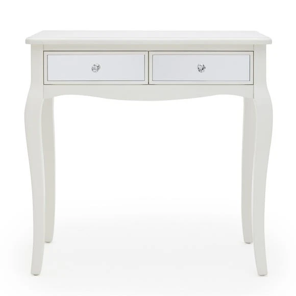 This partially assembled dressing table is the ideal size for situating in a range of interiors. Featuring two spacious, mirrored drawers with smooth runners, this piece is will add a stylish touch to your home.