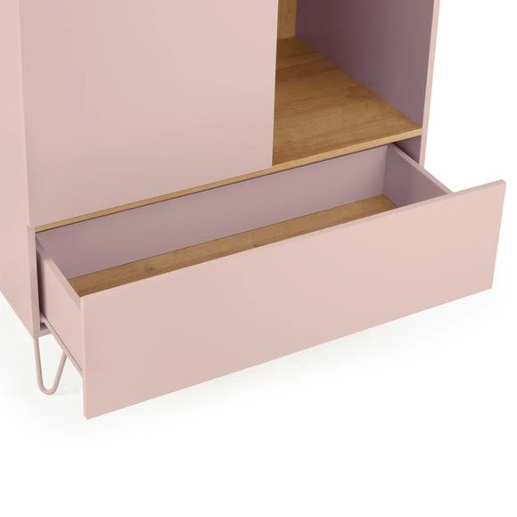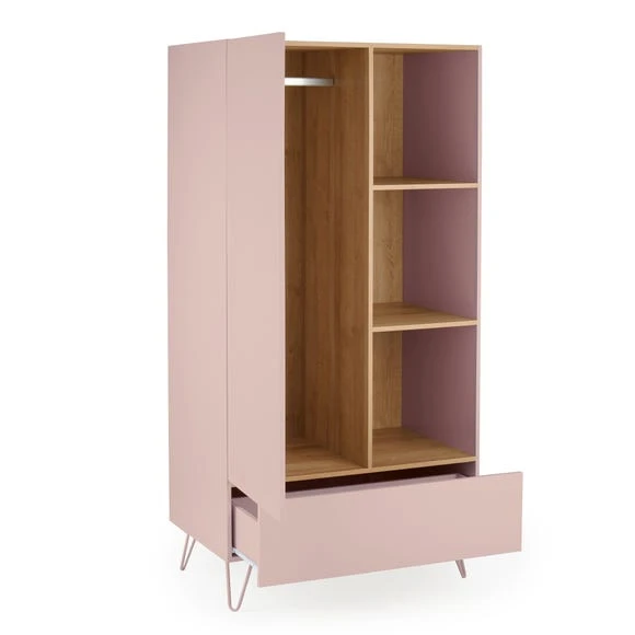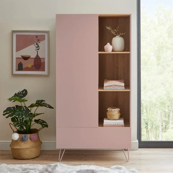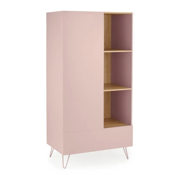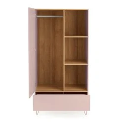 Perfect for storing all your must-have pieces and more, the Penelope wardrobe features a huge drawer space, 3 open shelves and hanging space. The soft colour with wood finish is sure to stand out in your bedroom decor.