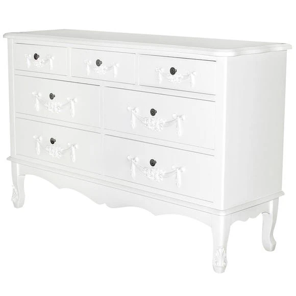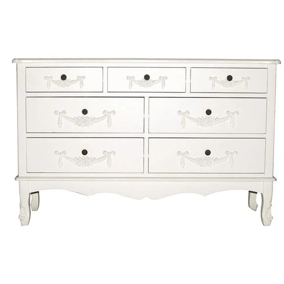 Boasting ample storage space, this chest features four large drawers with three smaller drawers at the top. Complete with bronze ornate handles, this stylish chest is decorated with a lovely patterned detail on the front. Constructed from a solid pine wood, the Toulouse chest is a durable piece of furniture.