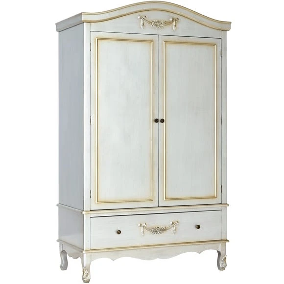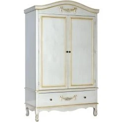 Featuring a French-inspired design with ornate floral detailing, the Toulouse range boasts a vintage look, with a choice of antique silver and distressed off-white finishes. Featuring curved legs, this self-assembly double wardrobe will add an elegant touch to any room.