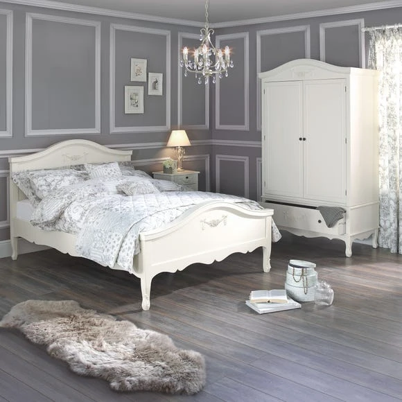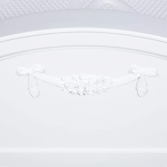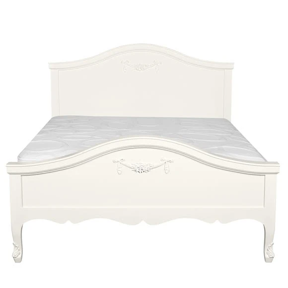 Featuring a French-inspired design with ornate floral detailing, the Toulouse range boasts a vintage look, with a distressed off-white finish. Featuring curved legs, this self-assembly bedstead will add an elegant touch to any room. Crafted with a solid pine frame and legs for durability, the Toulouse bedstead is finished with decorative detailing on the headboard and footboard.