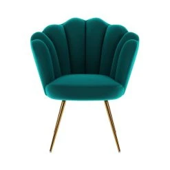 With its curved silhouette complete with a scalloped, shell back design, the Vivian cocktail chair offers a glamorous, art deco inspired design and would be the perfect statement piece for your home. This part assembly chair features a foam-filled seat and backrest to provide luxurious comfort and comes complete with stunning gold-coloured metal legs. This elegant cocktail chair is upholstered in a smooth velvet fabric and finished in a choice of stunning colourways.