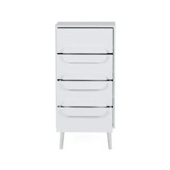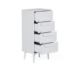 The Anders Tall Chest of Drawers features four spacious drawers, copmplete with metal runners and a stylish tapered leg design.