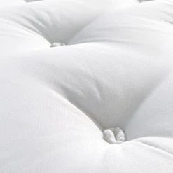 The filling of this mattress is a combination of wool and eco-flex material. Wool is a natural temperature regulator helping to keep you from becoming too hot or too cold as you sleep. This layer also acts as a moisture wick to absorb any body moisture. Eco-flex adds comfort to the mattress as it surrounds the springs to form additional padding and cushioning. It is also made from recycled clothing and textile fibres meaning it is kinder to the environment. Finished with a hand tufted cover to maintain the filling distribution and prevent it sinking where you sleep, this mattress features a quilted wire frame providing edge-to-edge support and is complete with 4 handles to make it easier to move.