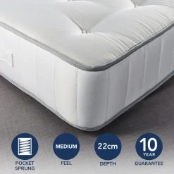 | Product Dimensions | Single: L 192cm x W 92cmSmall Double: L 192cm x W 122cmDouble: L 192cm x W 137cmKingsize: L 202cm x W 152cmSuper Kingsize: L 202cm x W 182cmMattress Depth: 22cm |