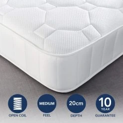 | Product Dimensions | Single: L 192cm x W 92cmSmall Double: L 192cm x W 122cmDouble: L 192cm x W 137cmKingsize: L 202cm x W 152cmSuper Kingsize: L 202cm x W 182cmMattress Depth: 20cm |