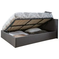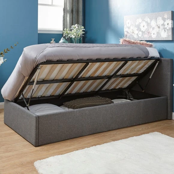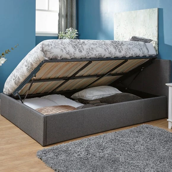 Simple yet stylish bed frame with a useful ottoman base for extra storage. The stunning Side Lift Fabric Ottoman Bed offers an attractive combination of contemporary style and ample storage space. The bed frame features a simple yet stylish stitched headboard and a low foot end to enhance the feeling of space. The base lifts easily with the help of a gas hydraulic system, giving access to a lined storage area for bedding or out-of-season clothes.