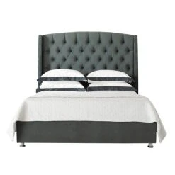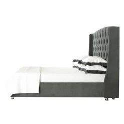 Add a touch of class to your bedroom with Buckingham winged ottoman bed frame, upholstered in a plush grey velvet fabric and featuring chrome feet and a winged headboard with gorgeous button detailing. With its heavy duty hydraulic gas struts, this bed is designed to work with heavier mattresses and features a spacious storage area beneath with a sturdy wooden base.