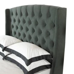 - Oversized Buckingham styled cushioned headboard with beautiful button detailing