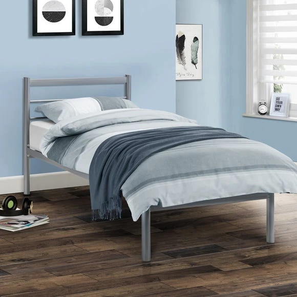 Features a minimalist design with sprung slats and a strong, durable, metal frame. Julian Bowen’s Alpen Bedstead is a striking minimalist design with a simple aluminum finish. It is sturdy metal construction, featuring sprung slats for strength and comfort. The bedstead is available in a variety of sizes. This bed comes in a high-quality AA standard doubled wall packaging