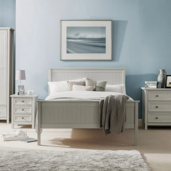 Featuring an exquisite dove grey lacquered finish with characteristic New England panelling, the Maine Wooden Bed makes for an elegant and refined bedroom centrepiece.