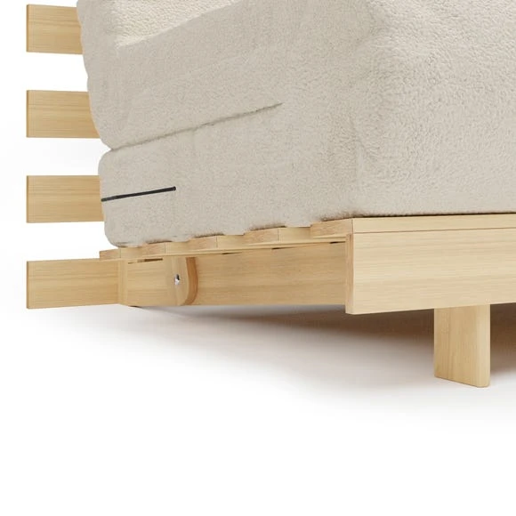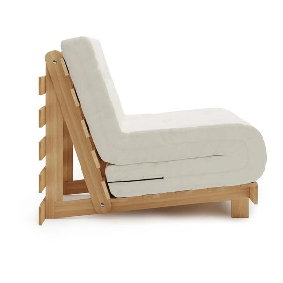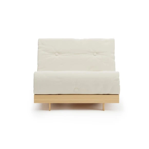 A handy, versatile futon for the modern home, the Mito Single Futon features a great space saving solution for smaller living spaces. This Futon folds out easily from a seat to a comfortable single bed for guests. The Mito Single Futon is constructed from solid pine and comes complete with a quality fibre and wool blend button design mattress wrapped in a Sherpa fabric.
