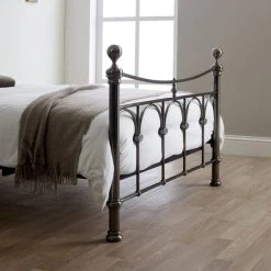 This classic metal bed frame has elegant arch detailing and an antique nickel finish. With its classic, understated design, the Limelight Gamma Nickel Bed Frame will make a wonderful addition to any bedroom. The bed is made of metal with an antique nickel finish that gives off a beautiful shine.
