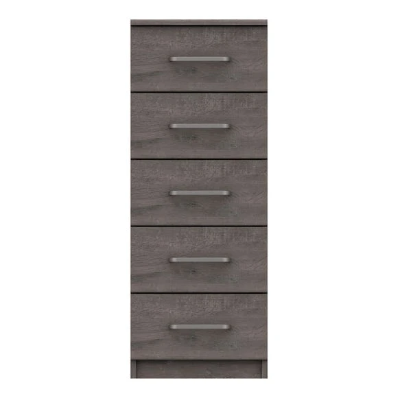 The Parker 5 Tall Chest of Drawers offers a contemporary design that would suit a wide range of décor styles. This stunning chest of drawers is supplied fully assembled and features linen look drawer insides and soft radius metal effect handles. Complete with five large drawers with 8mm heavy duty bases and easy glide metal runners, this Tall Chest of Drawers would make a practical addition to any home.