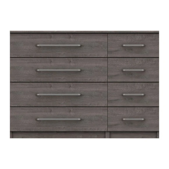The Parker 8 Drawer Wide Chest offers a contemporary design that would suit a wide range of décor styles. This stunning chest of drawers is supplied fully assembled and features linen look drawer insides and soft radius metal effect handles. Complete with 8 large drawers with 8mm heavy duty bases and easy glide metal runners, this chest would make a practical addition to any home.